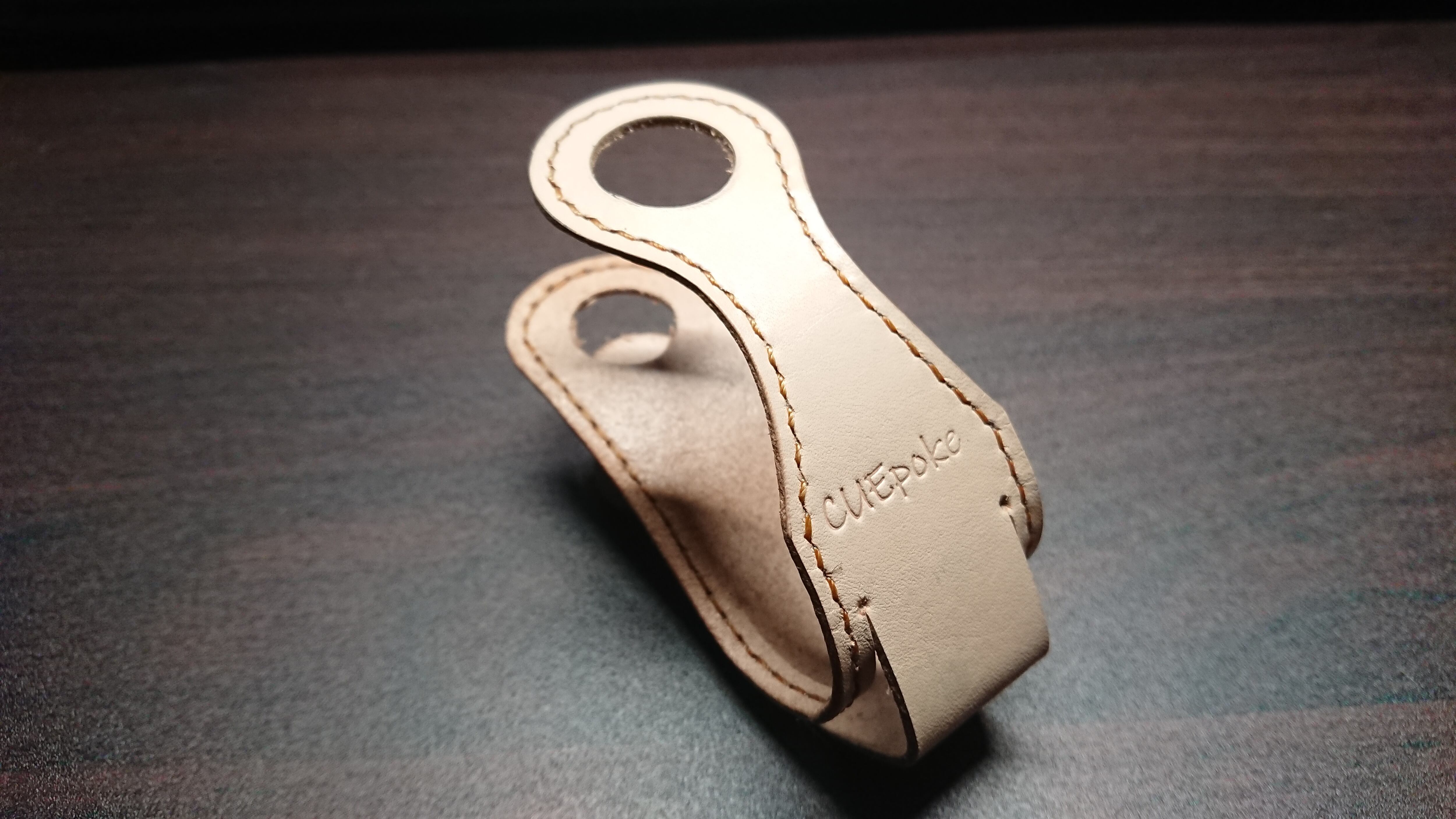 CUEpoke の基本形。シャフトに通すだけで、マイチョークを入れられ、グローブも挟んでおけますので、グローブの汚れや変形を防げます。